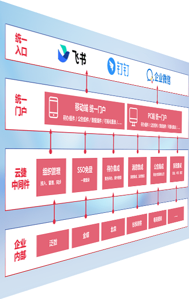 对协作平台提供支持服务,,,支持企业应用与协作平台对接,,包含组织同步、、、消息集成、、、、待办集成等。。。支持目前主流的协作平台:钉钉、、、企微和飞书。。